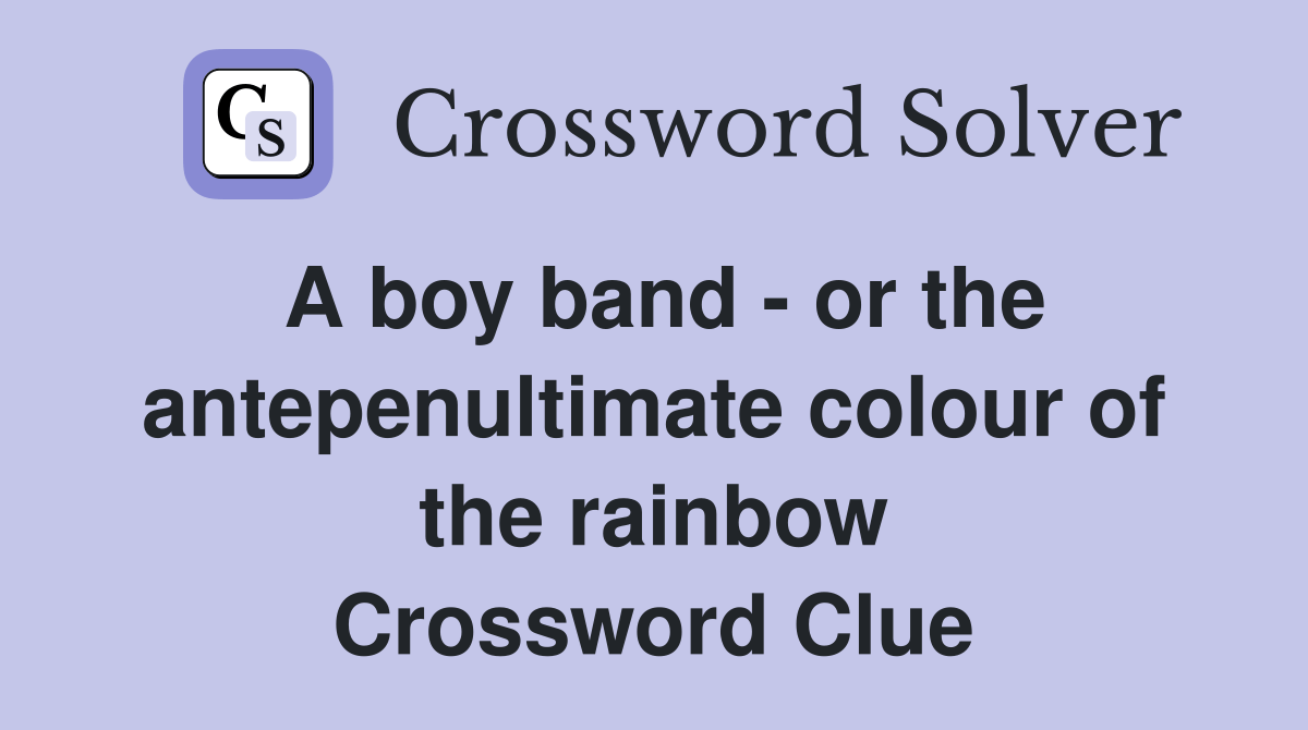 A boy band or the antepenultimate colour of the rainbow Crossword Clue Answers Crossword