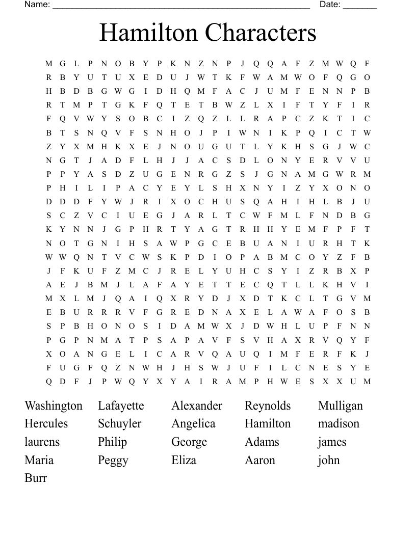 Hamilton Characters Word Search WordMint