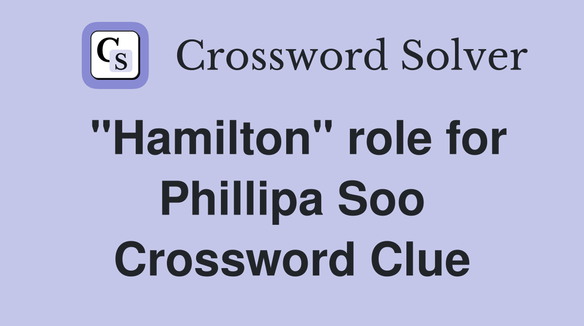 There is one answer total, soo is. Web the crossword solver found 30 answers to hamiltons role for phillipa soo, 5 letters crossword clue. Web here is the answer for the: Hamilton role for phillipa soo la times crossword. Web the crossword solver found 30 answers to hamilton role forphillipa soo, 5 letters crossword clue.
