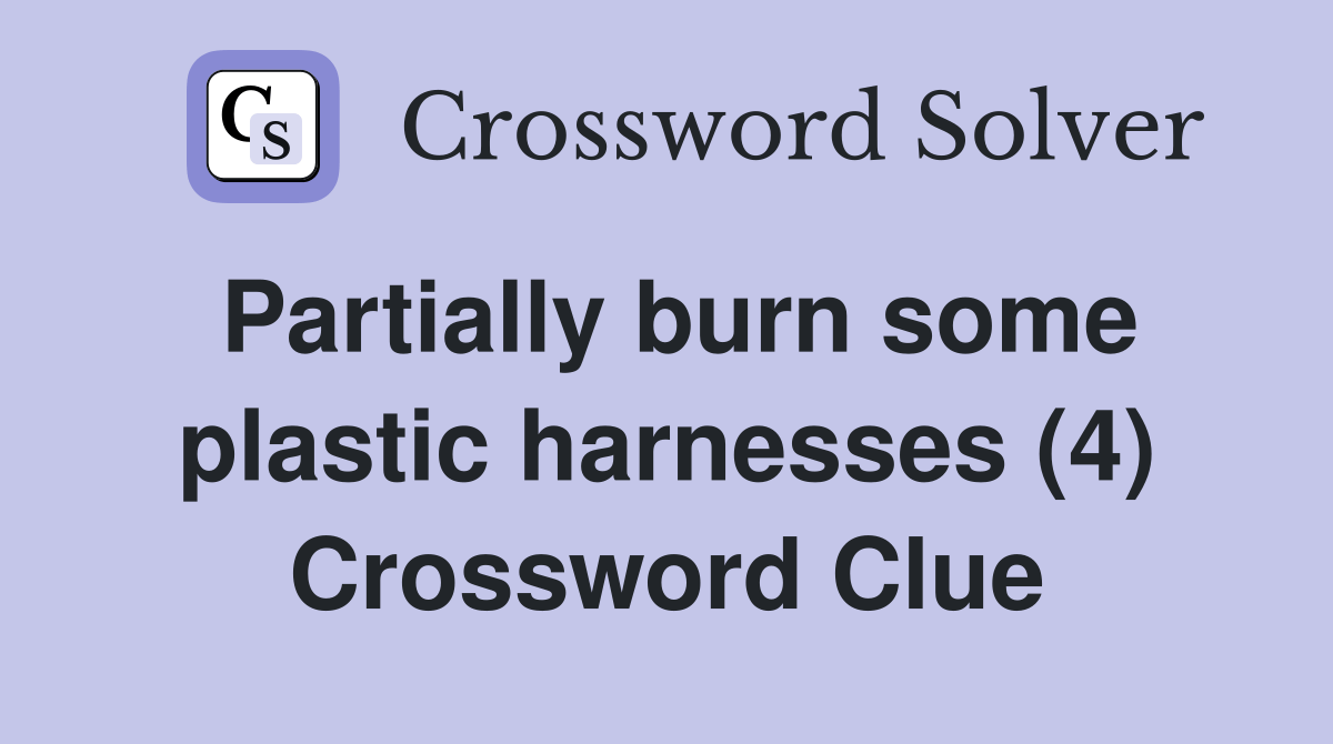 Partially burn some plastic harnesses (4) Crossword Clue Answers Crossword Solver