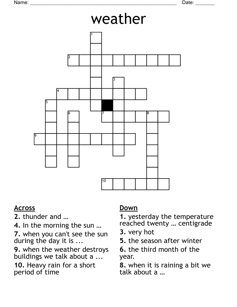 Weather Conditions Crossword Weather conditions, Weather, Crossword