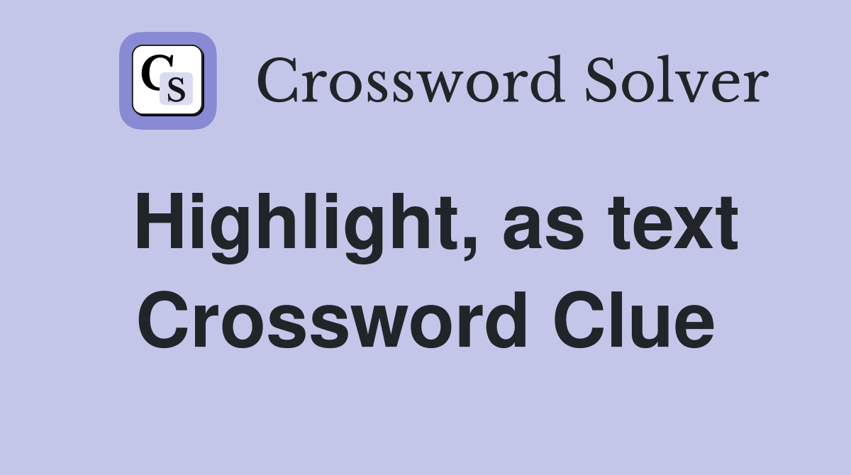 Highlight, as text Crossword Clue Answers Crossword Solver