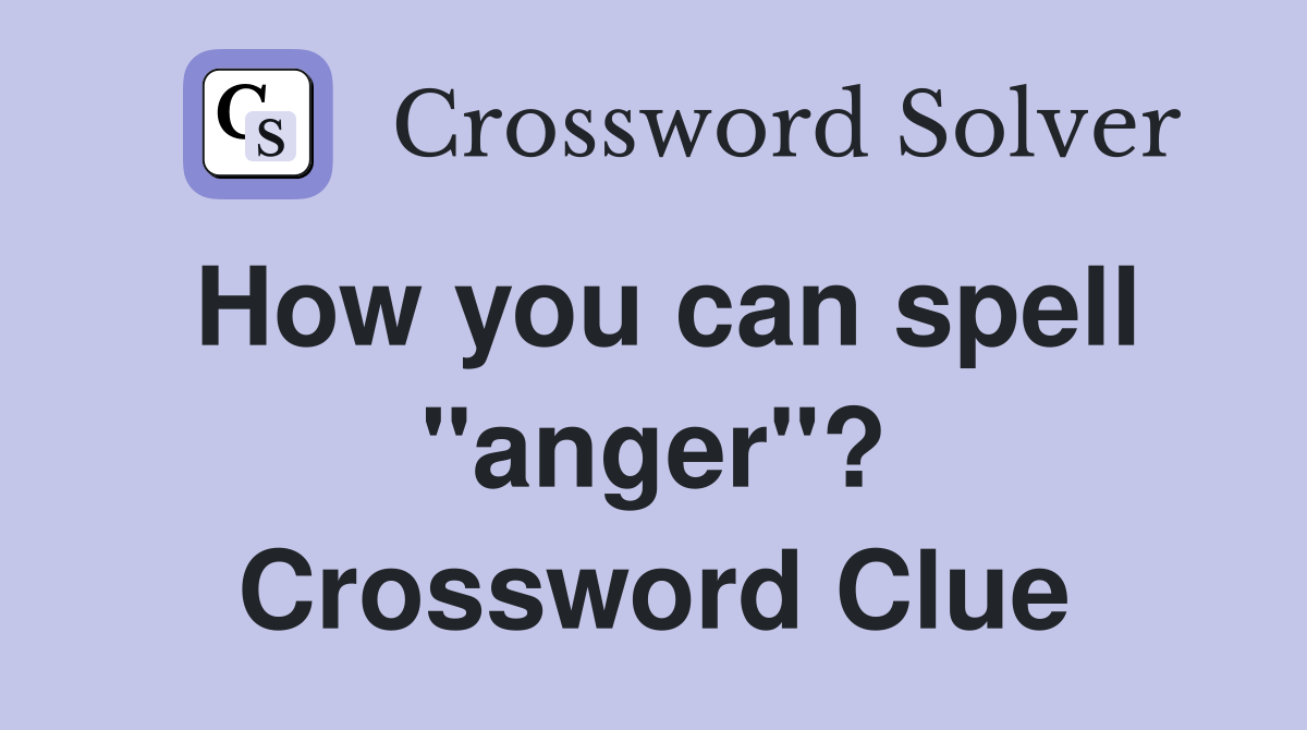 How you can spell "anger"? Crossword Clue Answers Crossword Solver