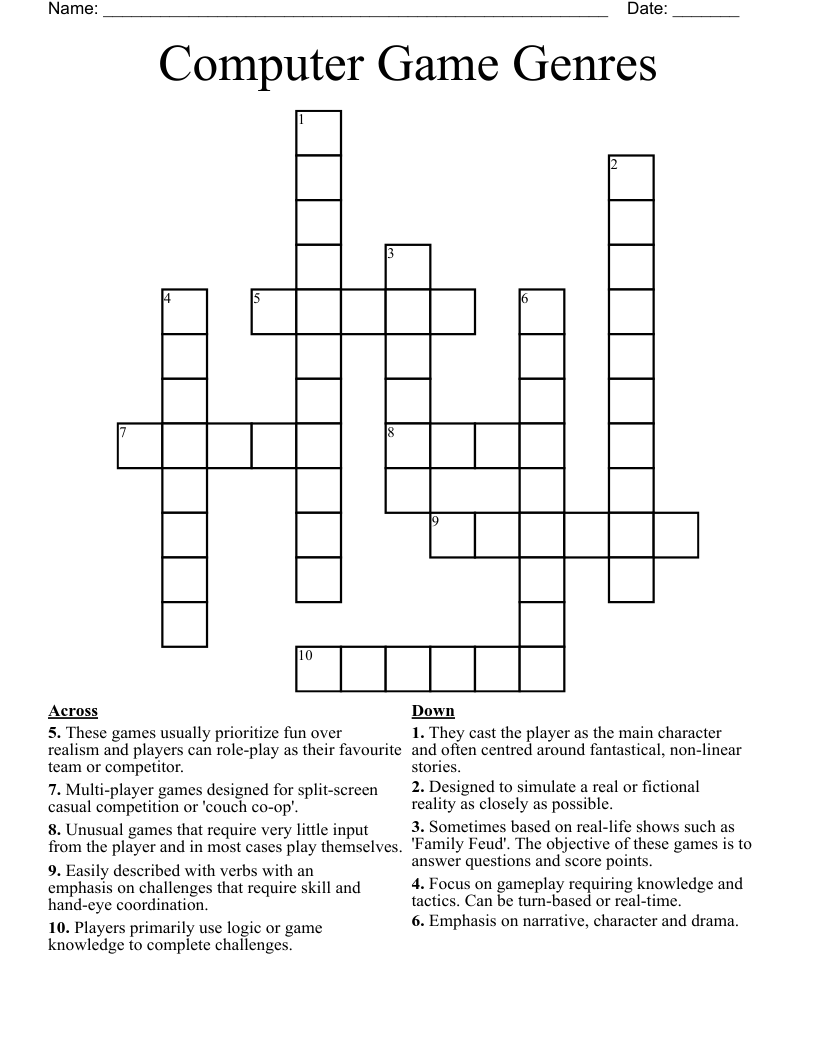 Computer Game Genres Crossword WordMint