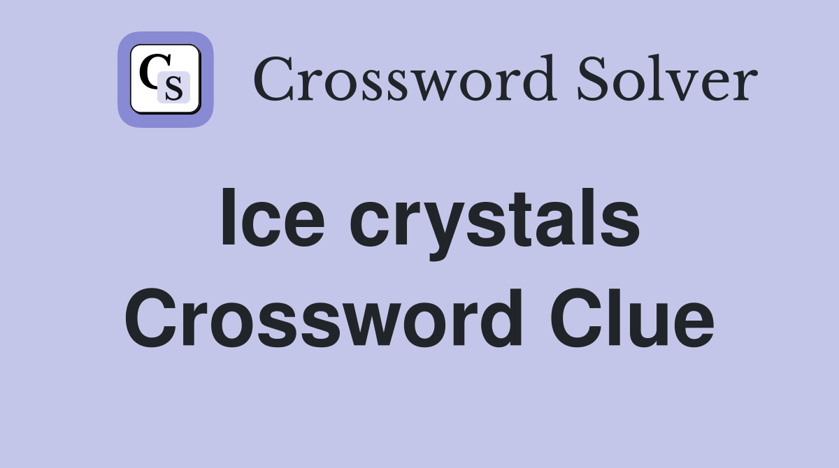 Web the crossword solver found 30 answers to ice crystals, 4 letters crossword clue. The crossword solver finds answers to classic. A further 3 clues may be related. If you haven't solved the. The top solutions are determined by popularity, ratings and frequency of searches.