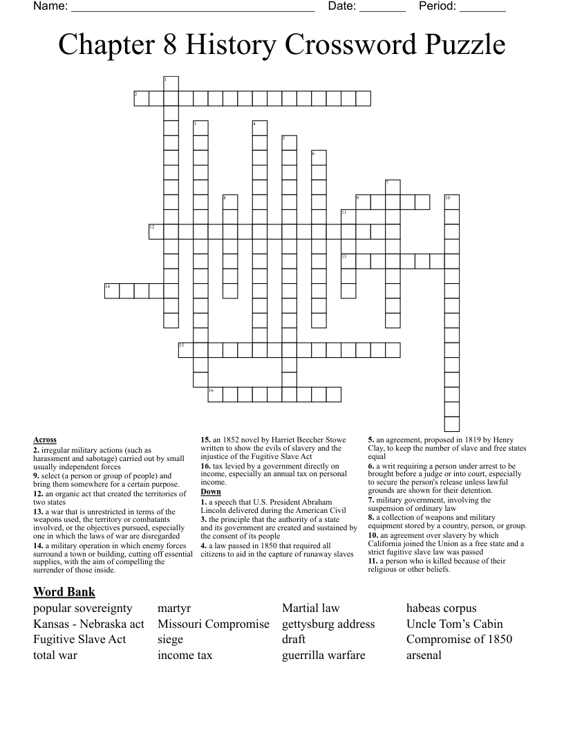 Chapter 8 History Crossword Puzzle WordMint