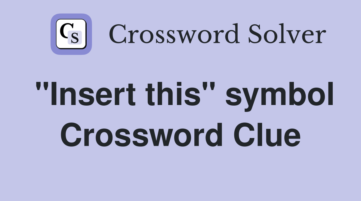 "Insert this" symbol Crossword Clue Answers Crossword Solver