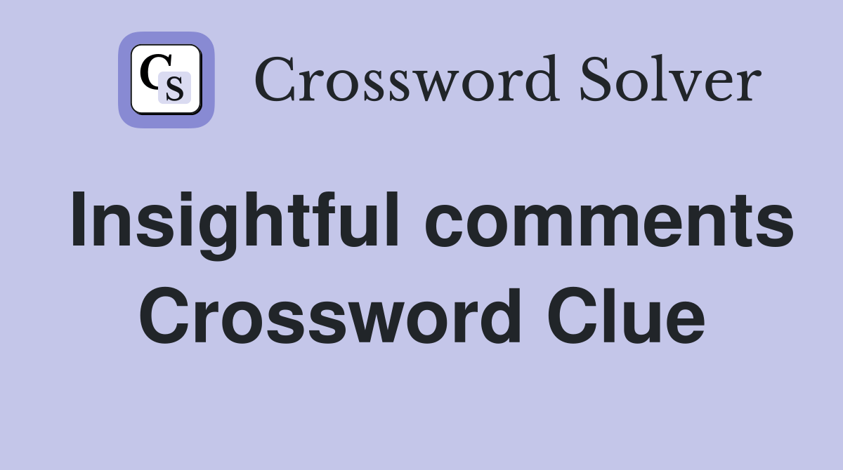 Web Here Is The Answer For The Crossword Clue Insightful Comments Last Seen In Commuter Puzzle.