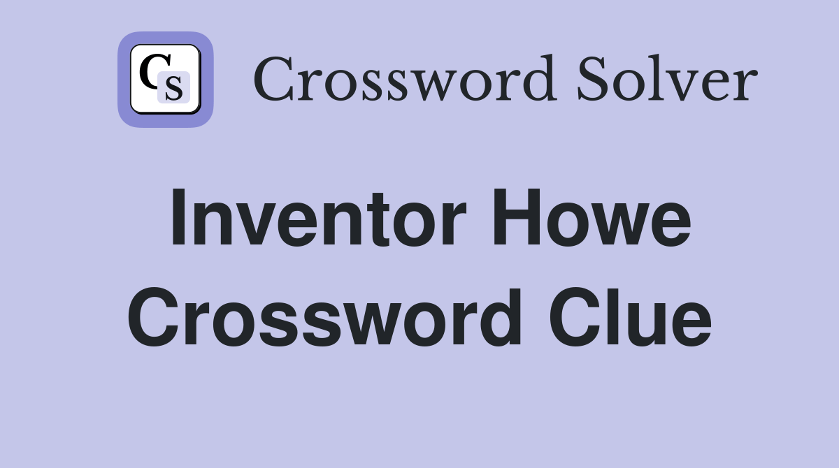 Web the crossword solver found 30 answers to inventor howe, 4 letters crossword clue. Web our crossword solver found 10 results for the crossword clue inventor howe. Web on this page, you will find the inventor howe crossword clue answers and solutions. The crossword solver finds answers to. Here is the solution for the inventor howe clue featured in eugene.