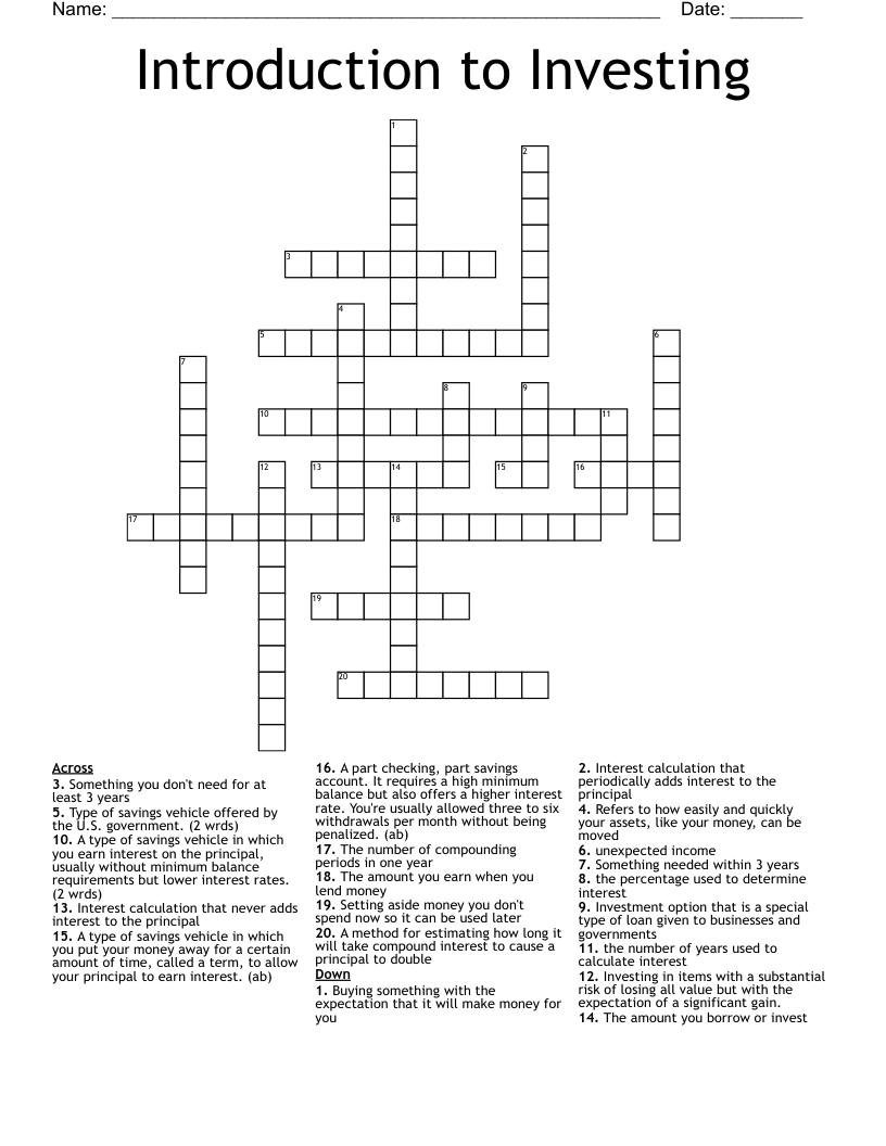 Introduction to Investing Crossword WordMint
