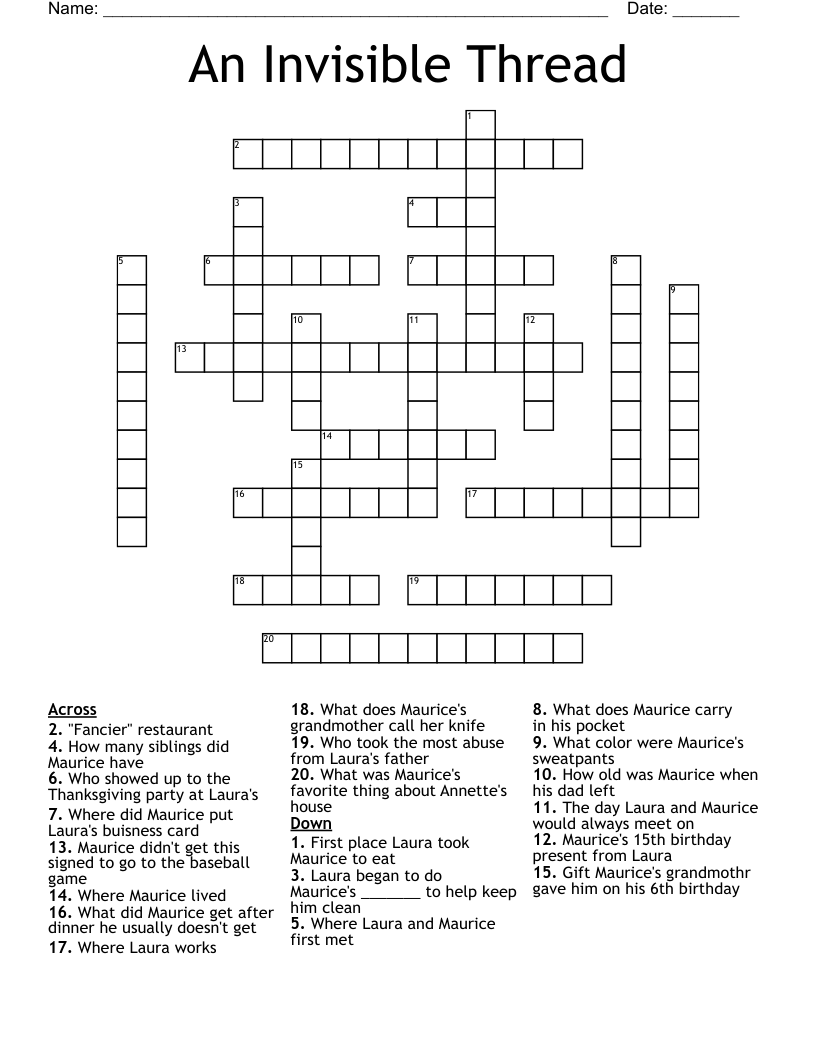 An Invisible Thread Crossword WordMint
