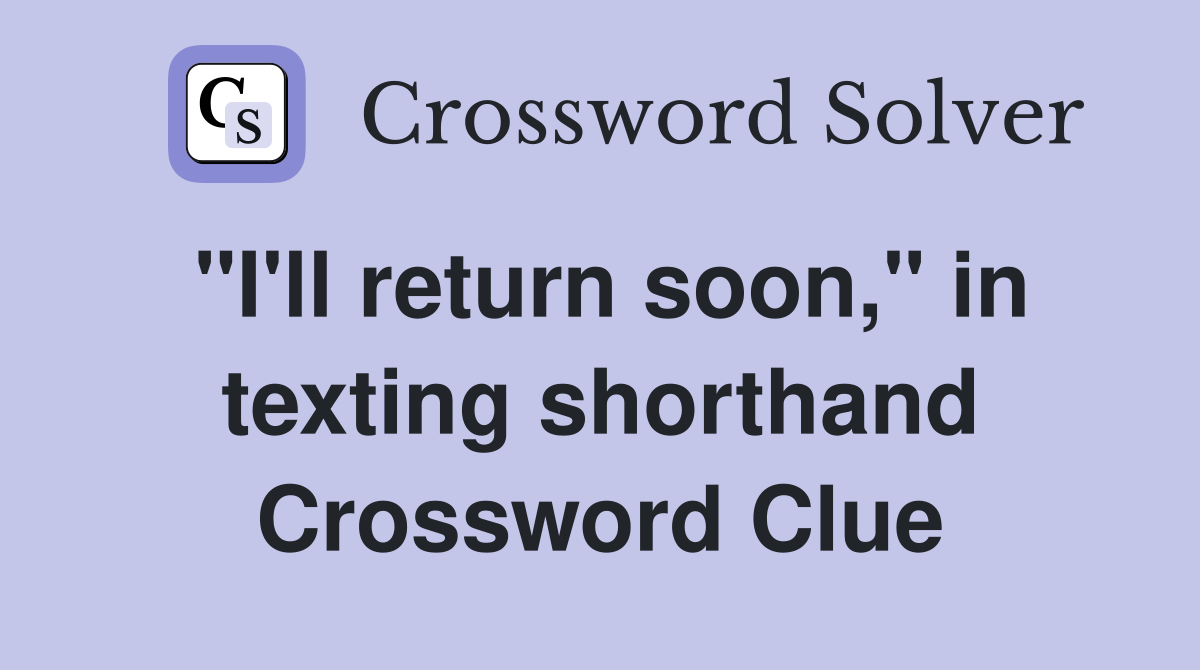 "I'll return soon," in texting shorthand Crossword Clue Answers Crossword Solver