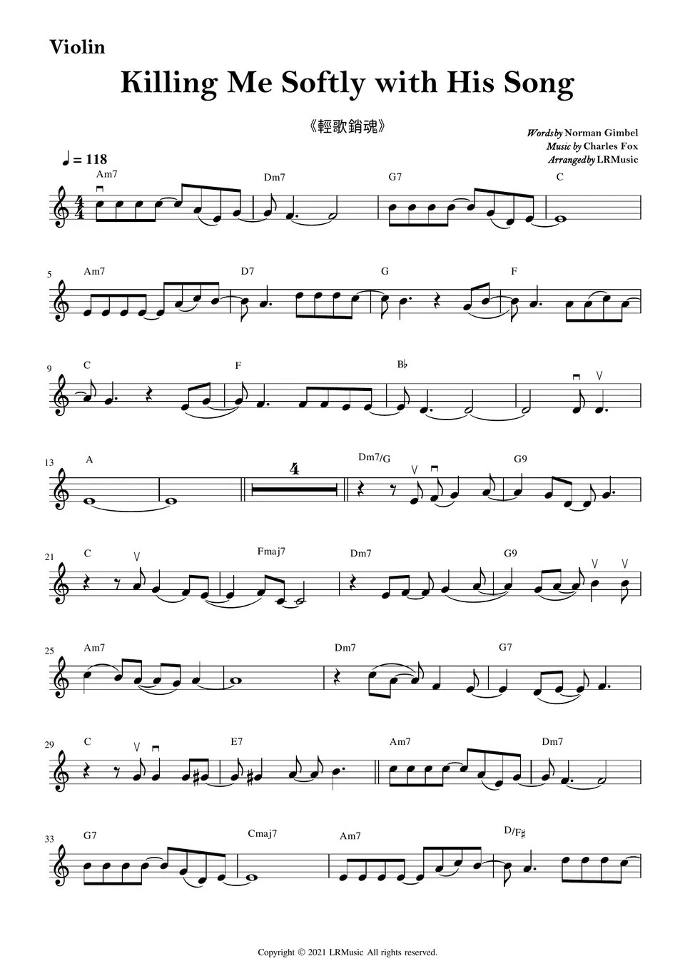 Roberta Flack Killing Me Softly with His Song|Violin Sheet Music Notenblatt by LRMusic