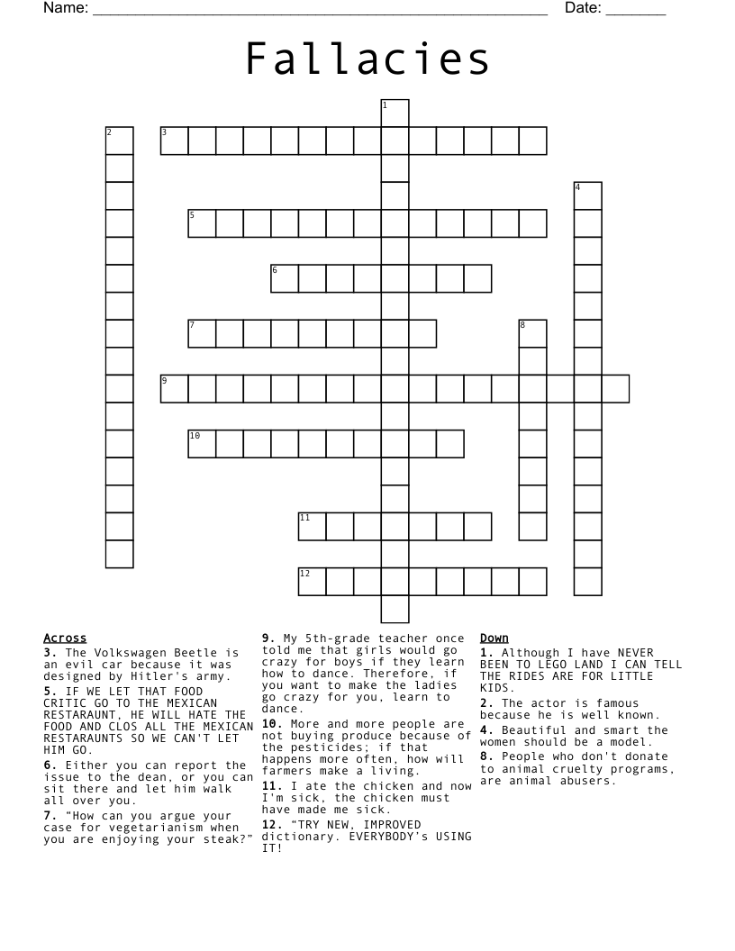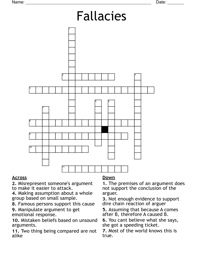 Fallacies Exercise Crossword WordMint
