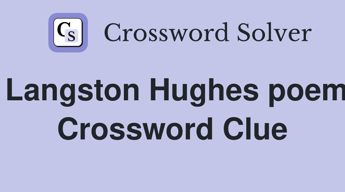 Langston Hughes poem Crossword Clue Answers Crossword Solver
