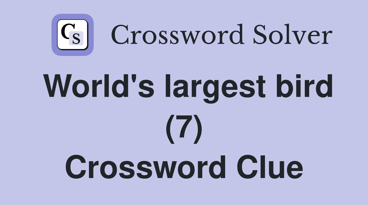 We have 1 answer for the clue largest living bird. All crossword answers with 7 letters for largest living bird found in daily crossword puzzles: We have 1 solution for the frequently searched for crossword lexicon. The top solutions are determined by popularity, ratings and frequency of. We have found 40 possible.