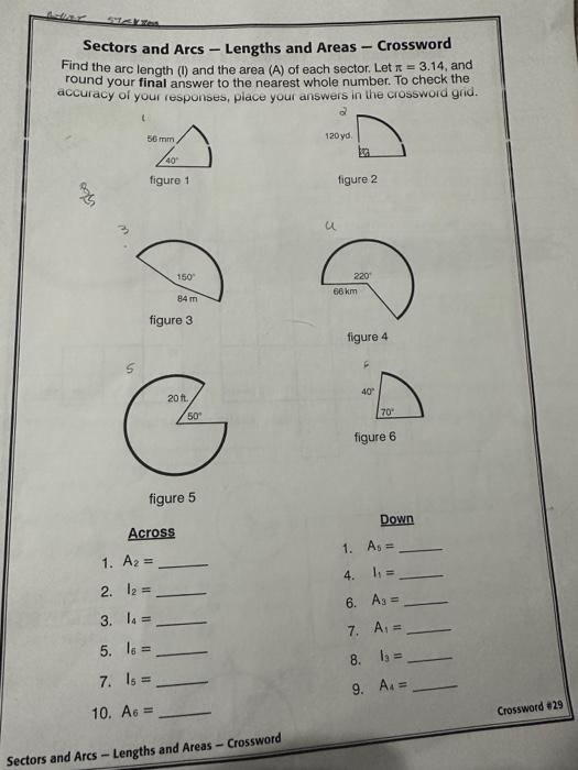 Solved Sectors and Arcs Lengths and Areas Crossword Find