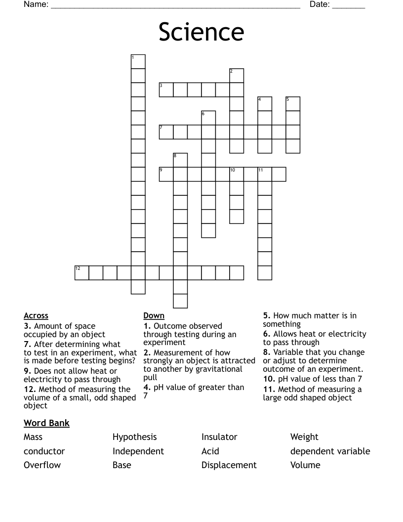 Science Crossword WordMint