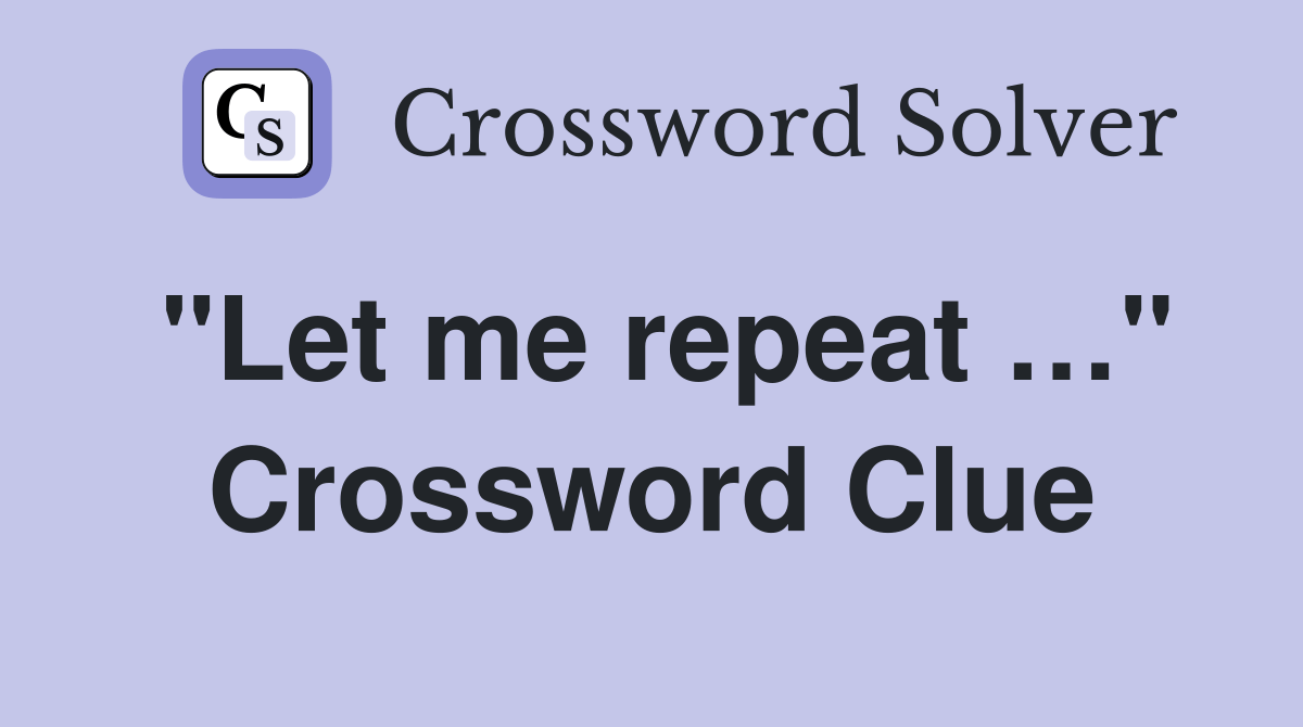 "Let me repeat …" Crossword Clue Answers Crossword Solver