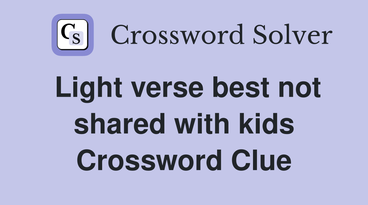 Light verse best not shared with kids Crossword Clue Answers Crossword Solver