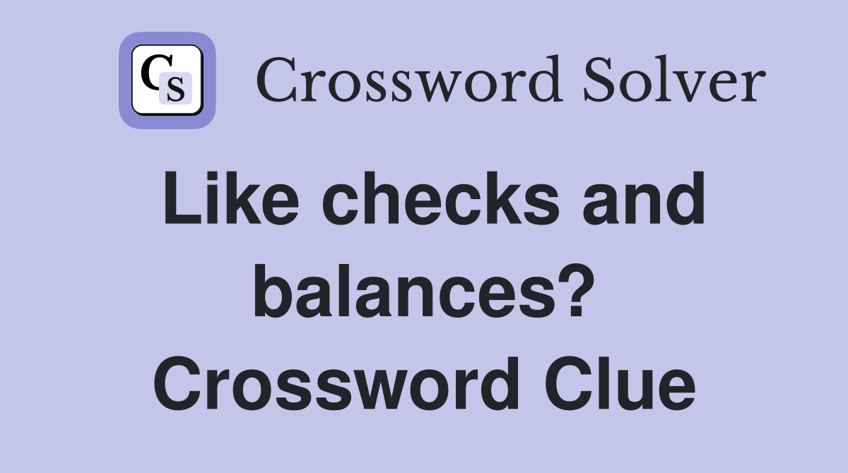 Last seen in new york times puzzle. Web we solved the clue 'like checks and balances? Did you came up with a solution that did not solve the clue?. Answers is the only source you need to. Web we will try to find the right answer to this particular crossword clue.