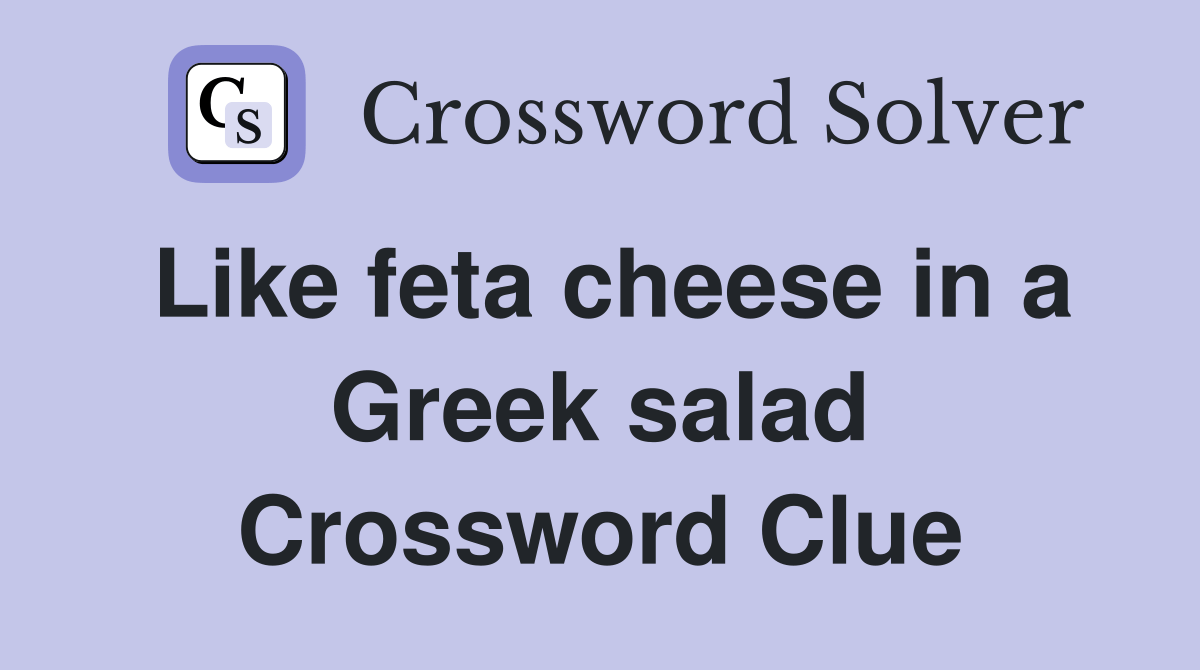 Like feta cheese in a Greek salad Crossword Clue Answers Crossword Solver