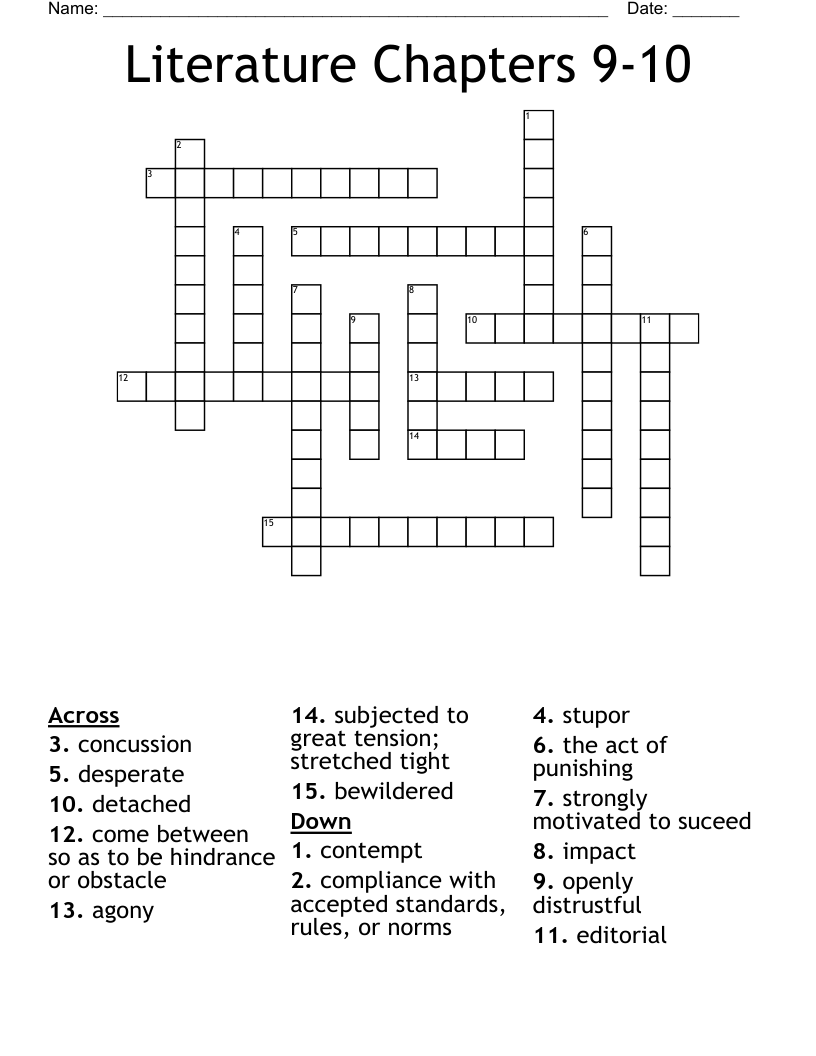 Literature Chapters 910 Crossword WordMint