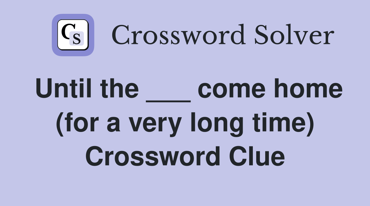 Until the ___ come home (for a very long time) Crossword Clue Answers Crossword Solver