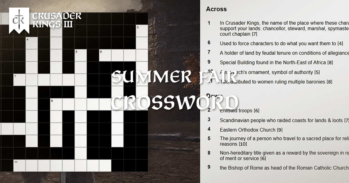 Crusader Kings III on Twitter "🌞 Summer Fair CK3, enjoy a crossword puzzle! Find the correct
