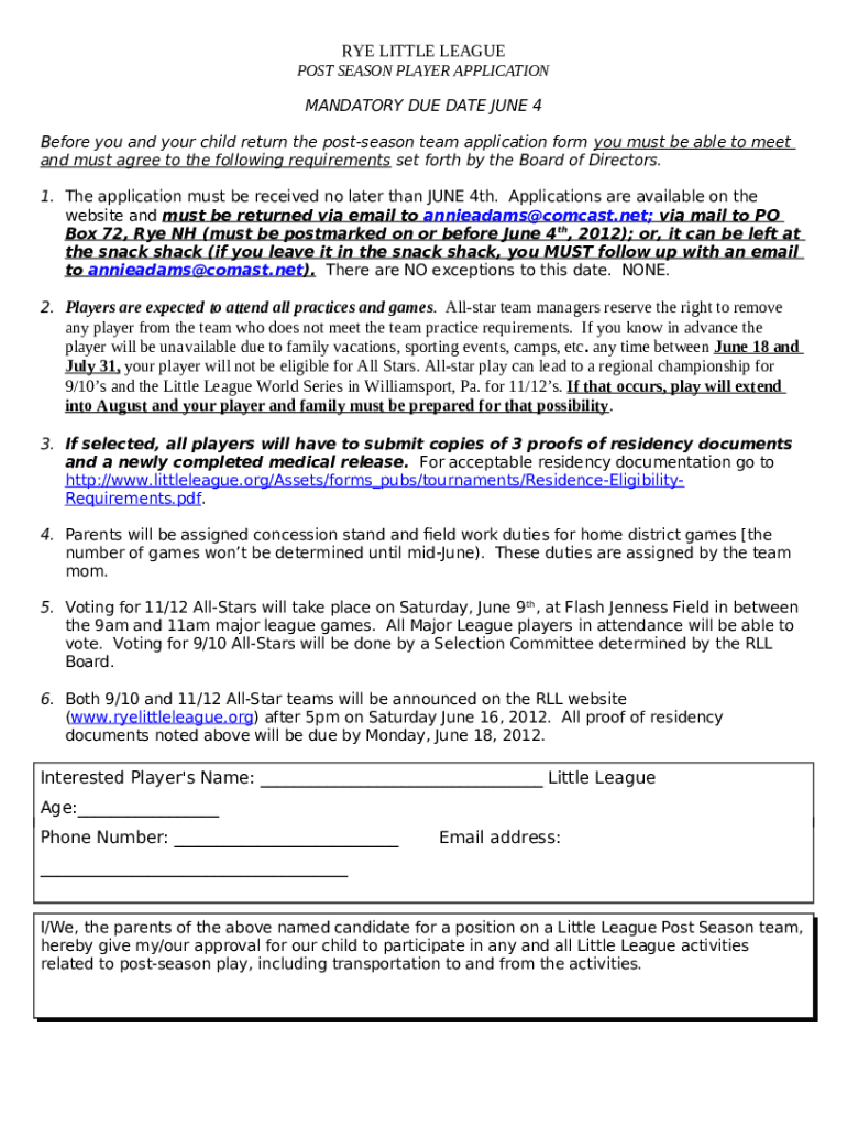 Eligibility RulesRye Little League Doc Template pdfFiller
