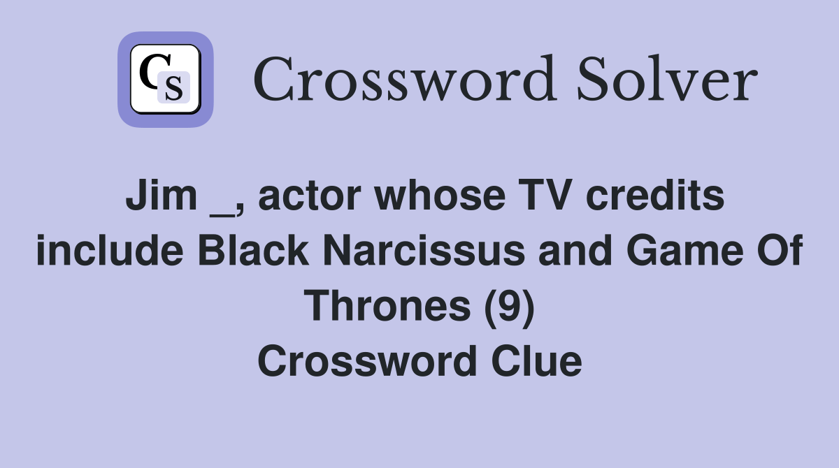 Jim _, actor whose TV credits include Black Narcissus and Game Of Thrones (9) Crossword Clue