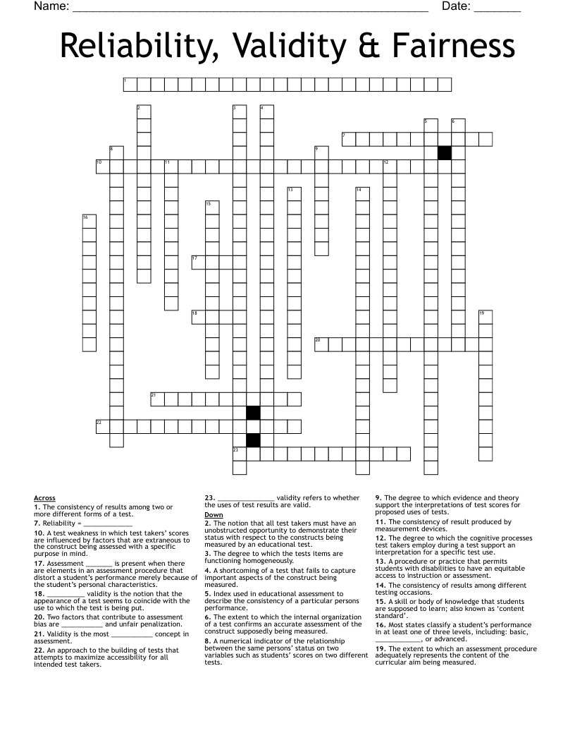 Reliability, Validity & Fairness Crossword WordMint