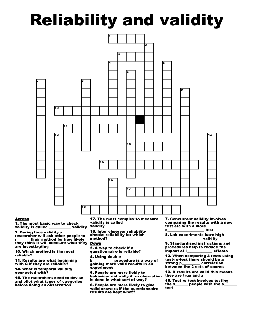 Reliability and Validity Extra Credit Crossword WordMint