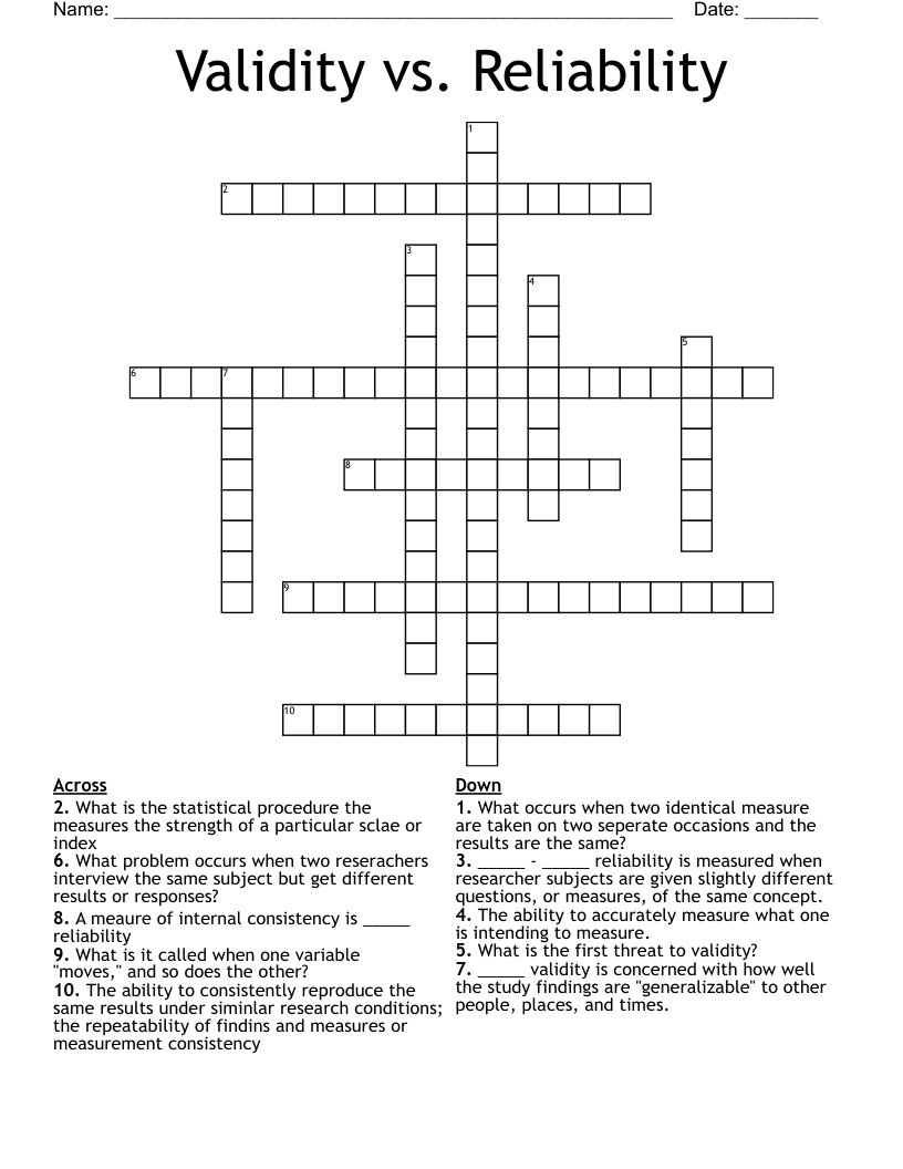 Validity vs. Reliability Crossword WordMint
