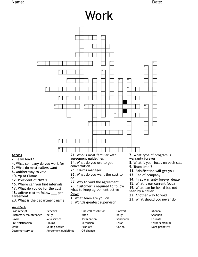 What is Work Crossword WordMint