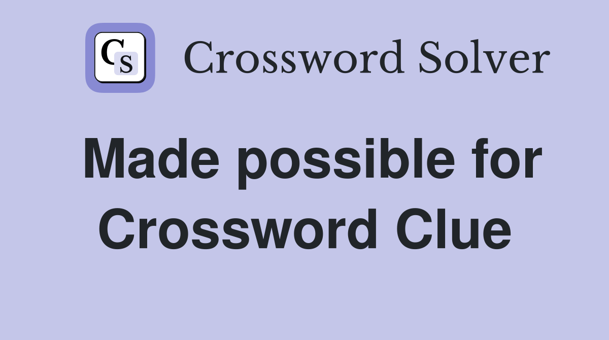 Make possible is a crossword puzzle clue that we have spotted over 20 times. Web our crossword solver found 10 results for the crossword clue make possible.