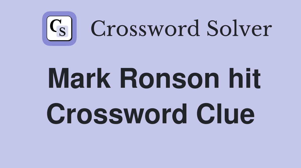 Mark Ronson hit Crossword Clue Answers Crossword Solver