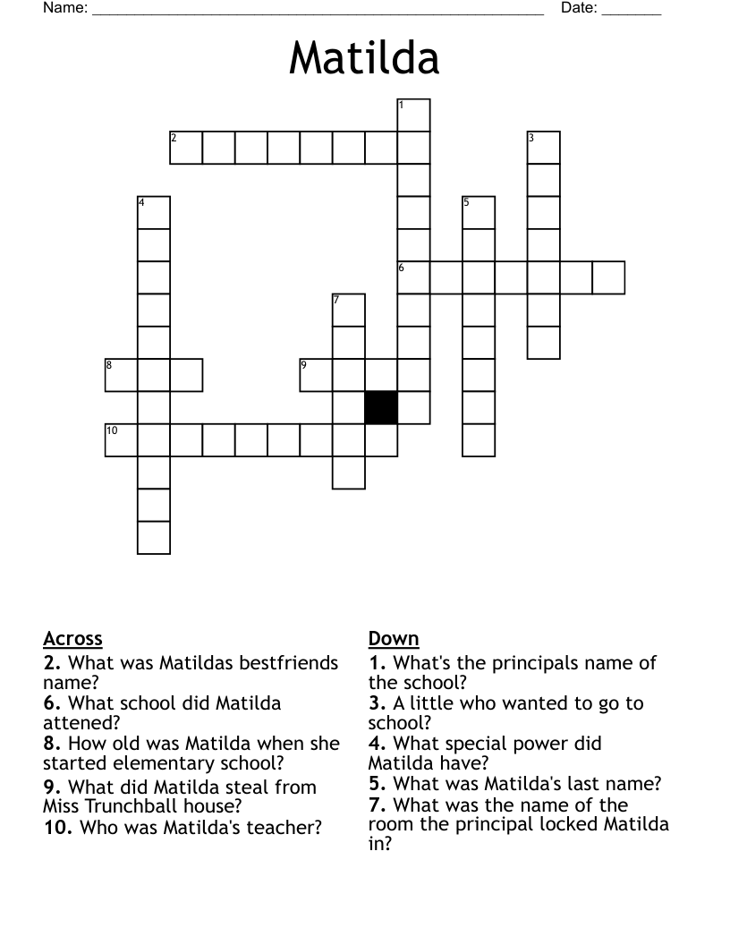 matilda movie crossword part … English ESL worksheets pdf & doc