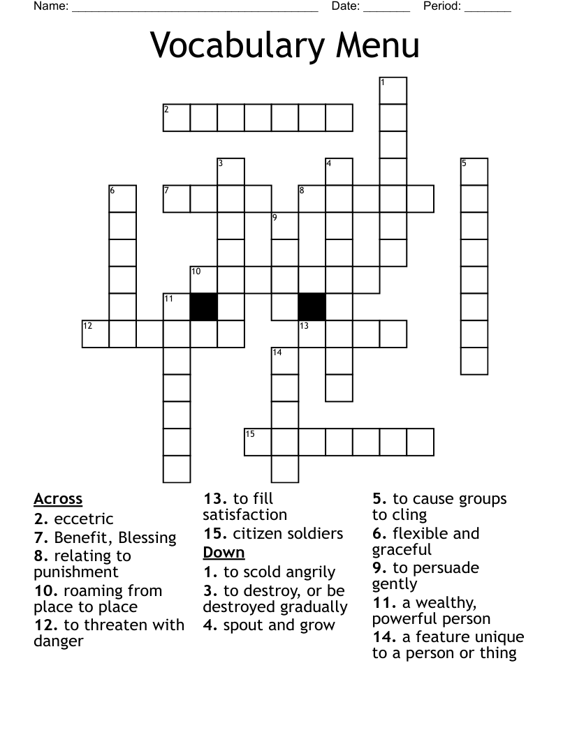 Vocabulary Menu Crossword WordMint
