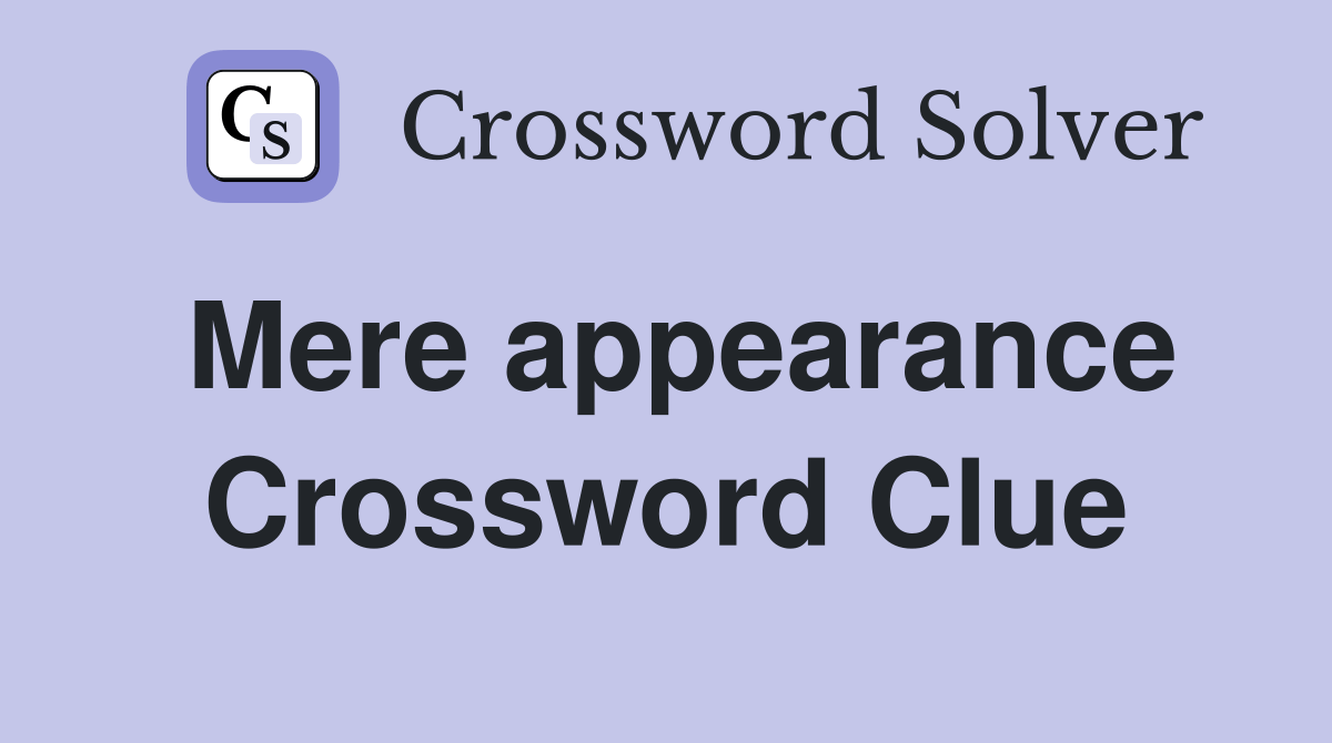 We have found 40 possible answers. The crossword solver finds answers to. Web the crossword solver found 30 answers to mere appearance, 6 letters crossword clue.