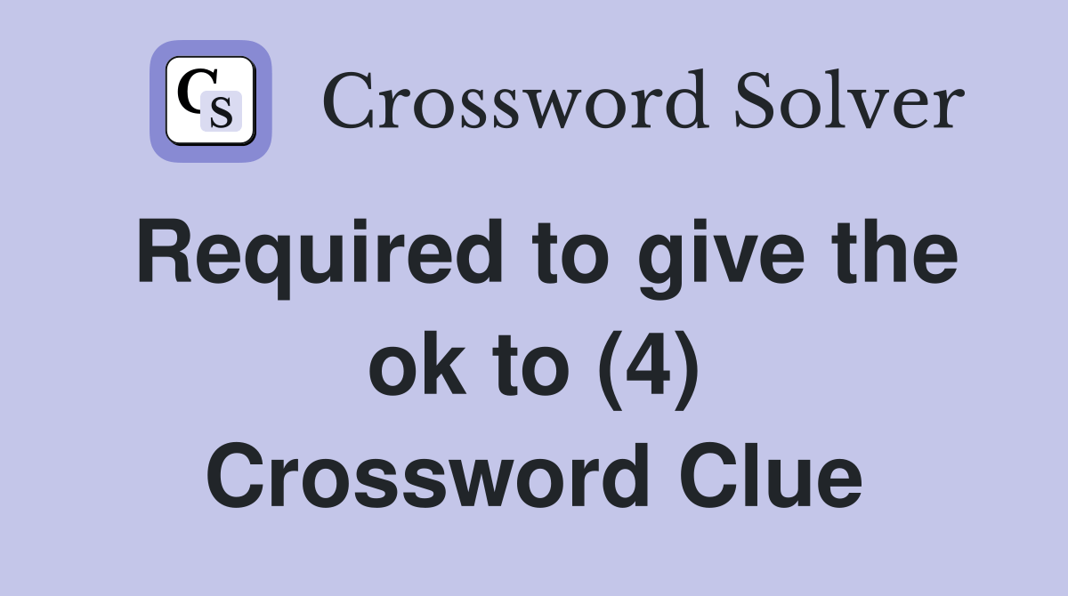 Required to give the ok to (4) Crossword Clue Answers Crossword Solver