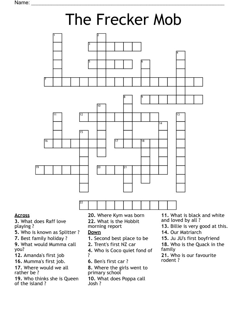 The Frecker Mob Crossword WordMint