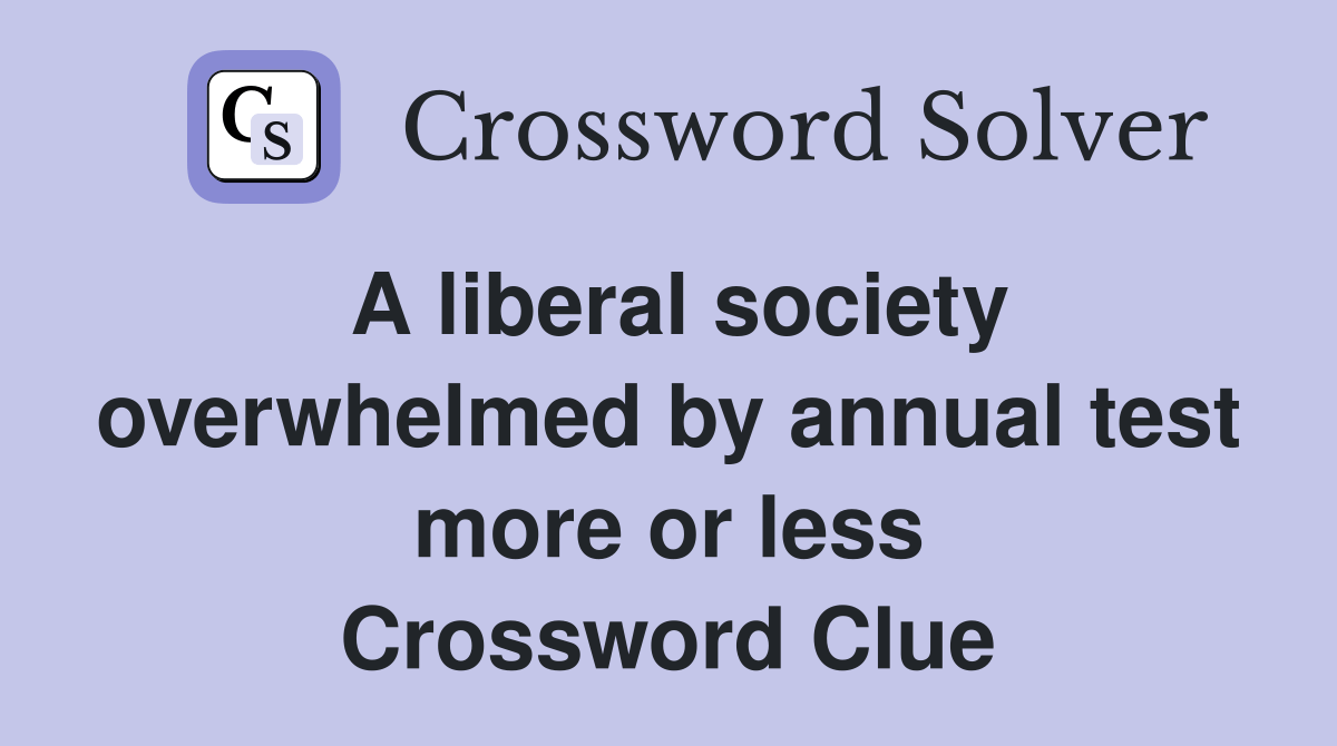 A liberal society overwhelmed by annual test more or less Crossword Clue Answers Crossword