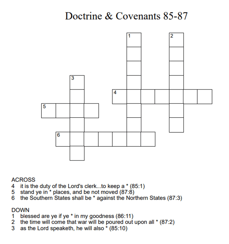 Scripture Crossword Puzzles Crossword puzzles for Come, Follow Me Doctrine & Covenants 8587