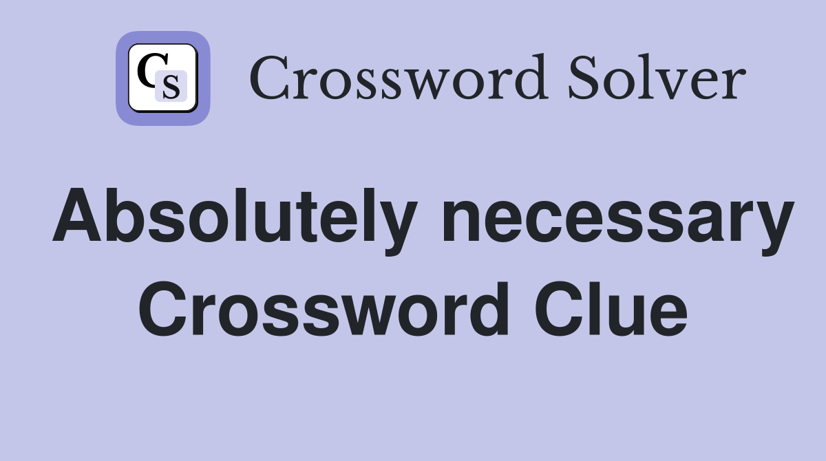 Absolutely necessary Crossword Clue Answers Crossword Solver