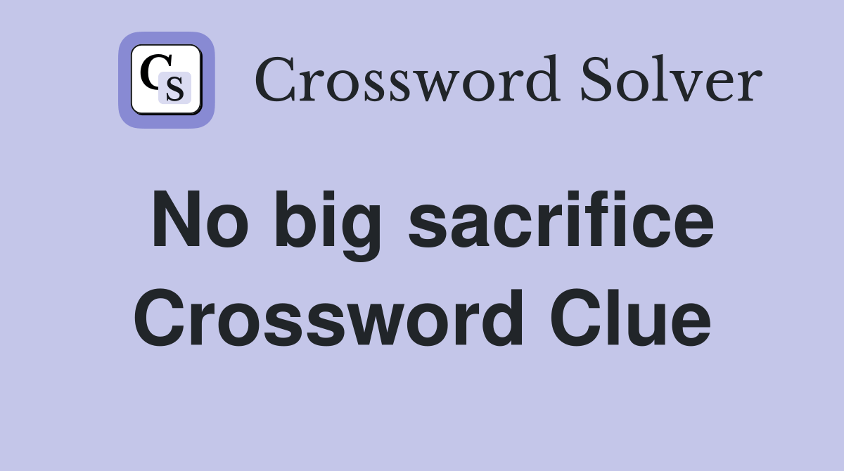 We will try to find the right answer to this particular crossword. No big sacrifice crossword clue. Web the crossword solver found 30 answers to no big sacrifice, 15 letters crossword clue. Web today's crossword puzzle clue is a quick one: There are related clues (shown below).