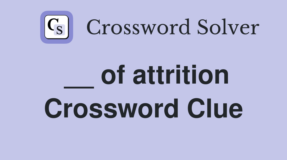 __ of attrition crossword clue. We know 1 solutions for: We have found 17 possible answers for this. There will also be a list of synonyms for. The crossword solver finds answers to.