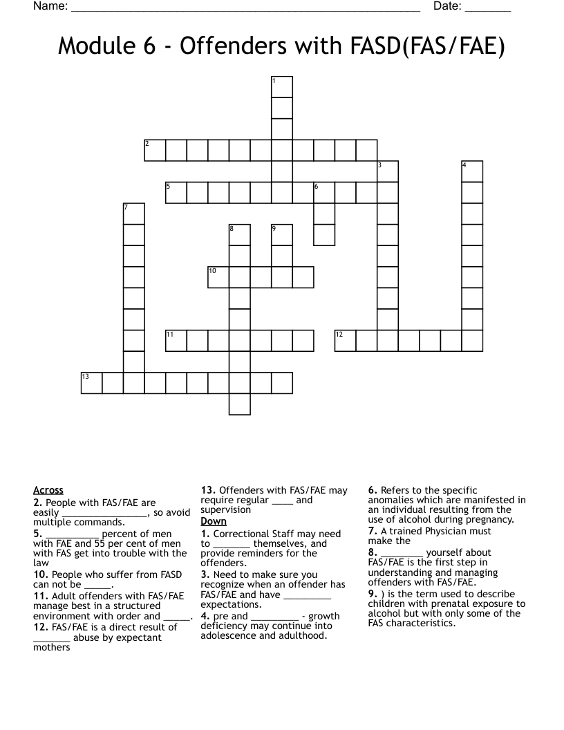 Module 6 Offenders with FASD(FAS/FAE) Crossword WordMint