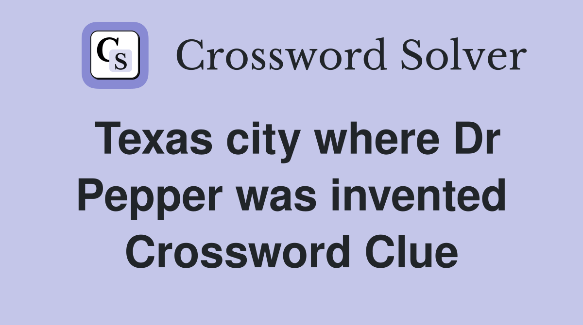 Texas city where Dr Pepper was invented Crossword Clue Answers Crossword Solver