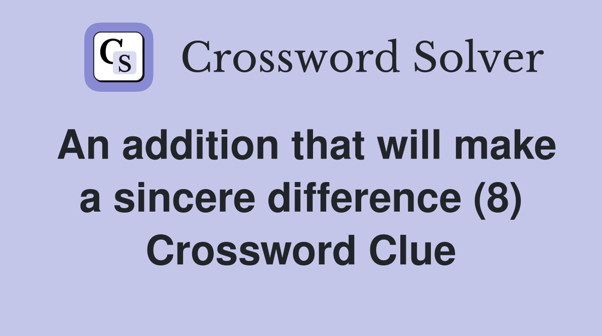 An addition that will make a sincere difference (8) Crossword Clue Answers Crossword Solver